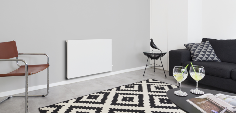 Erkennbar sind Wärmepumpen-Heizkörper an den relativ großen und flachen Heizflächen. Durch ihre große Fläche verteilen sie die Wärme gleichmäßig und schnell im Raum und der hohe Anteil an Strahlungswärme steigert die Effizienz zusätzlich.